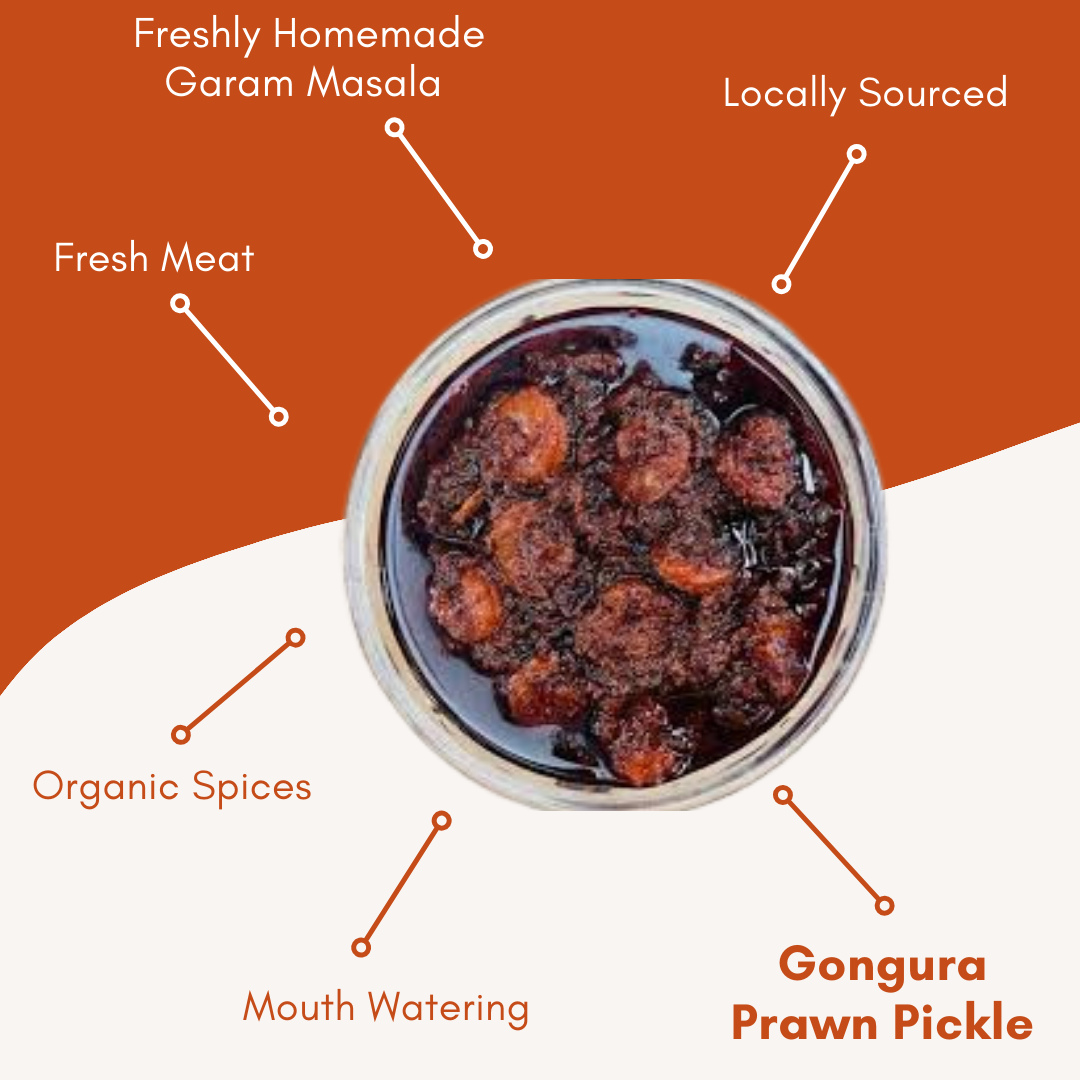 Gongura Spicy Prawn Pickle is a popular South Indian pickle known for its tangy and spicy flavor profile. It combines the sour taste of Gongura (sorrel) leaves with the flavor of prawns, creating a unique and flavorful pickle. It's often made with fresh prawns, Gongura leaves, spices, and oil, and is typically served with rice or as an appetizer.